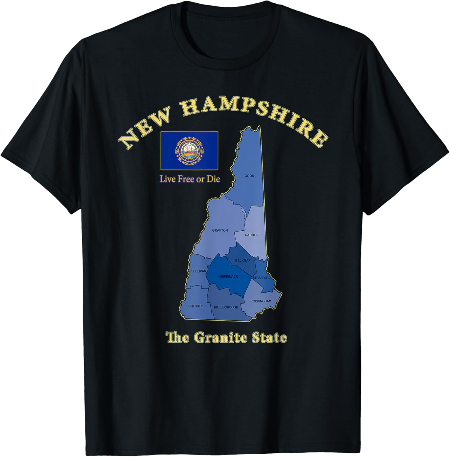Amazon Com New Hampshire County Map Flag Motto Nickname T Shirt Clothing